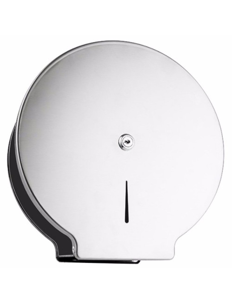 Caracteristici tehnice: - fabricat din inox - se inchide cu cheie - fanta pentru vizualizarea nivelului de hartie ramas - capacitate: 1 rola de hartie - dimensiuni: inaltime 26,2 cm, latime 25,5 cm, adancime 11,7 cm Mod de utilizare: - se introduce cheia in locasul aflat in partea superioara si se deschide capacul frontal - capacul se rabateaza avand balamale in parte inferioara - se introduce rola de hartie - se ridica capacul si se iincuie cu cheia. Se foloseste pentru role de hartie igienica tip Jumbo de pana la 300 metri sau cu diametrul maxim de 24 cm. Se recomanda atat pentru spatii publice aglomerate cat si pentru colectivitati restranse (birouri, cabinete medicale, baruri, restaurante).| Organizare si Arhivare | |